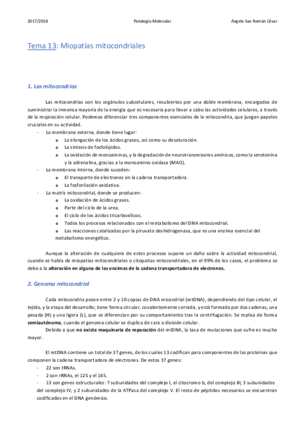 He publicado nuevos apuntes de 3º Patología Molecular: 13. Miopatías mitocondriales.pdf