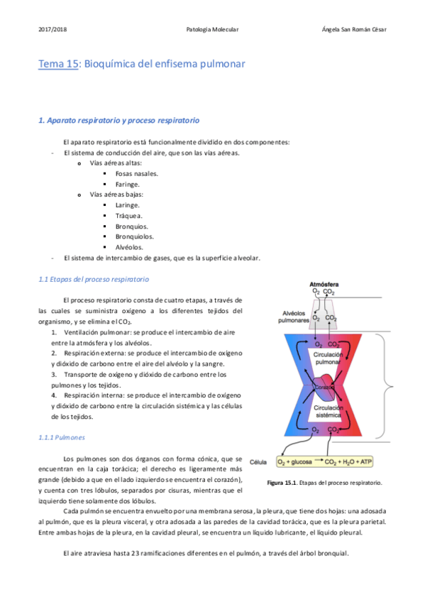 He publicado nuevos apuntes de 3º Patología Molecular: 15. Bioquímica del enfisema pulmonar.pdf