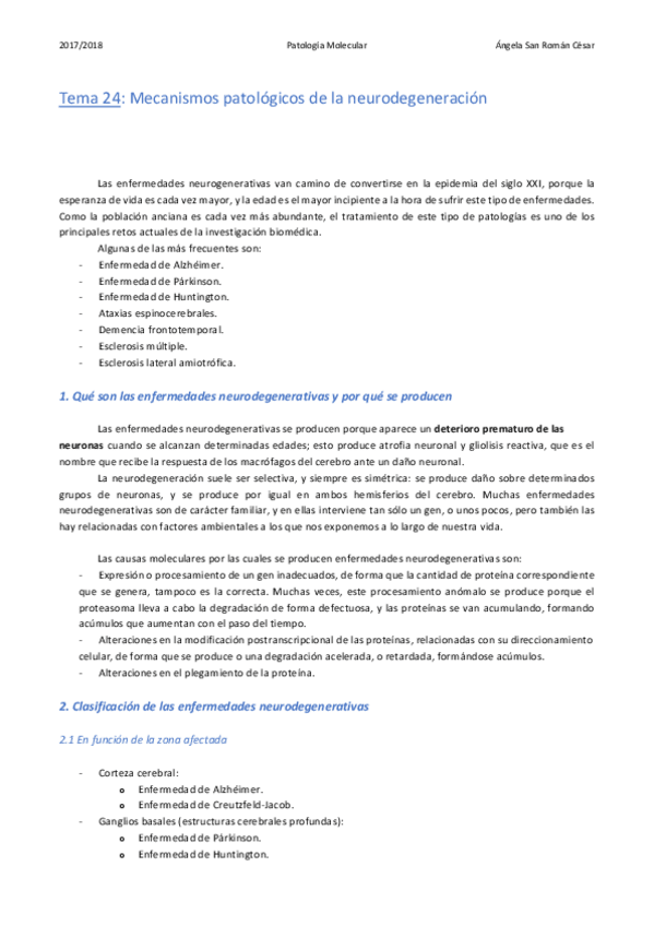 He publicado nuevos apuntes de 3º Patología Molecular: 24. Mecanismos patológicos de la neurodegeneración .pdf
