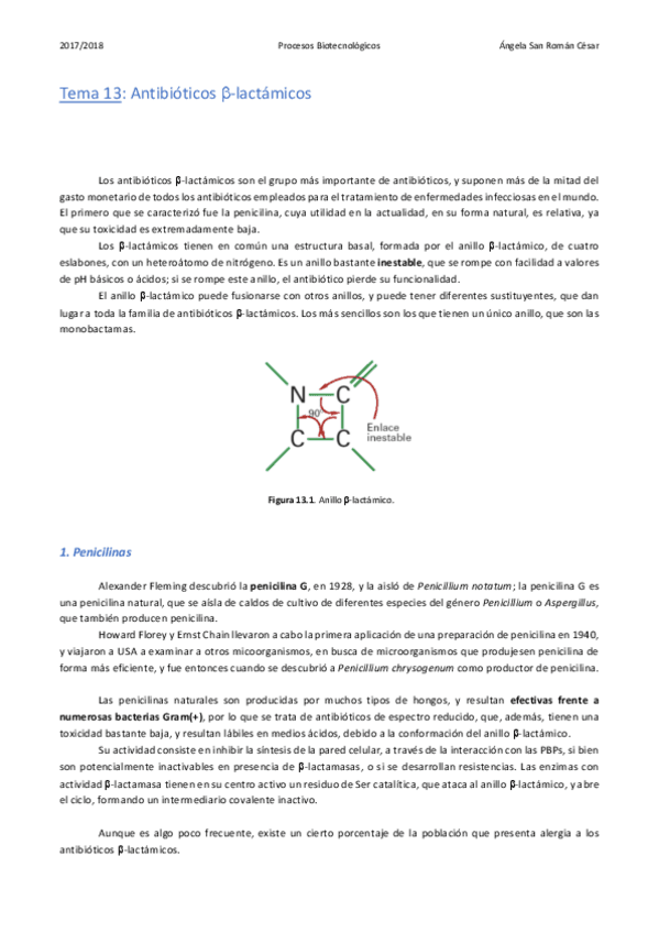 He publicado nuevos apuntes de 3º Procesos Biotecnológicos: 13. Antibióticos betalactámicos.pdf