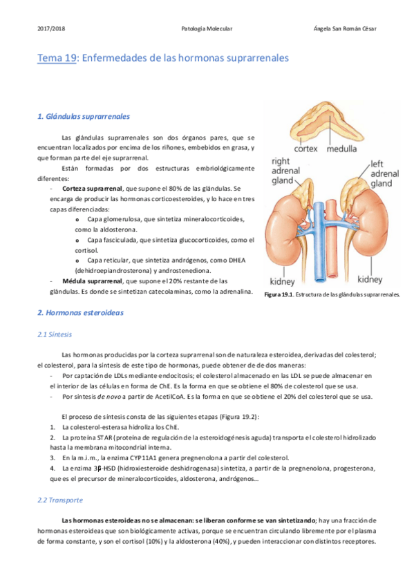 He publicado nuevos apuntes de 3º Patología Molecular: 19. Enfermedades de las hormonas suprarrenales .pdf