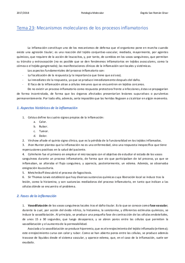 He publicado nuevos apuntes de 3º Patología Molecular: 23. Mecanismos moleculares de los procesos inflamatorios .pdf