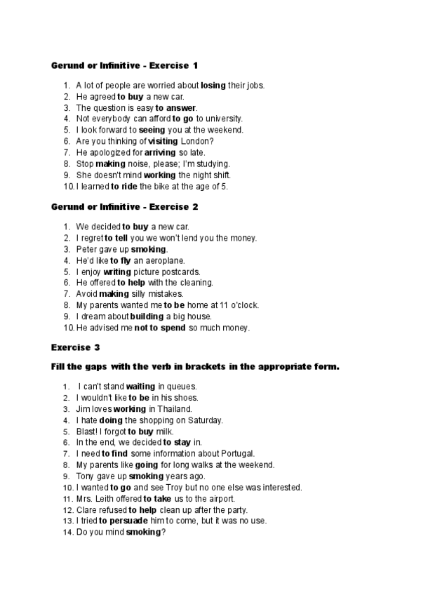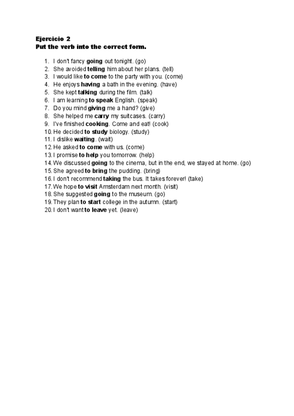 Gerund or Infinitive, teoría y los ejercicios resueltos