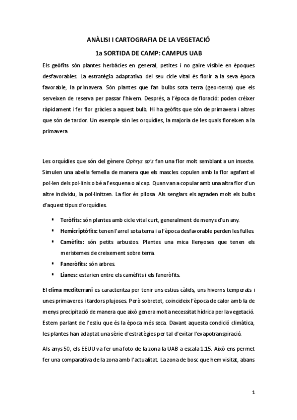 ANÀLISI I CARTOGRAFIA DE LA VEGETACIÓ