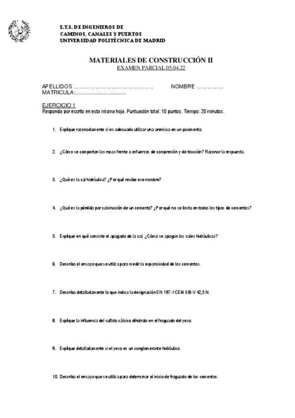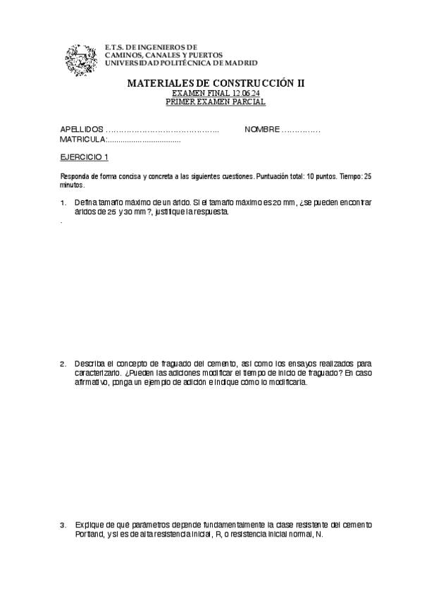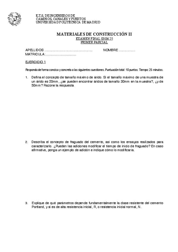 He publicado nuevos examenes de 2º Materiales de Construcción II: Exámenes Primer Parcial