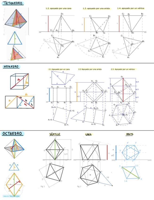 Tetraedro, hexaedro, octaedro. Sección de pirámides, cilindro y cono. Intersección recta con sólido.