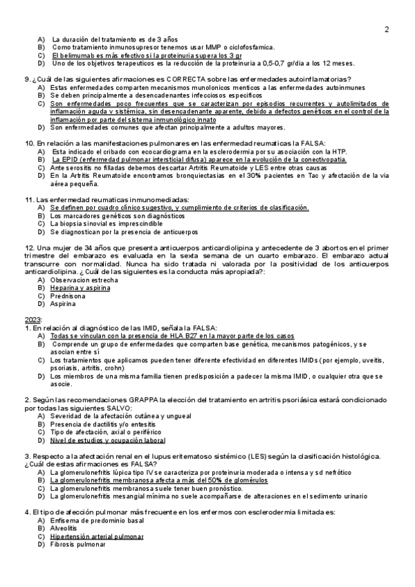 Preguntas con respuestas de 2024-2023 ordenado por las especialidades de la asignatura.