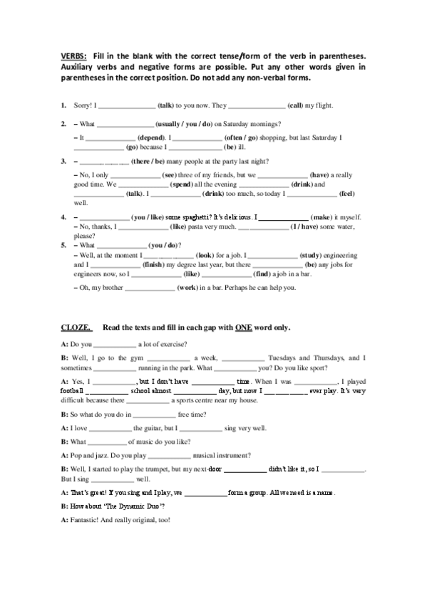 Ejercicios CLOZE + keys
