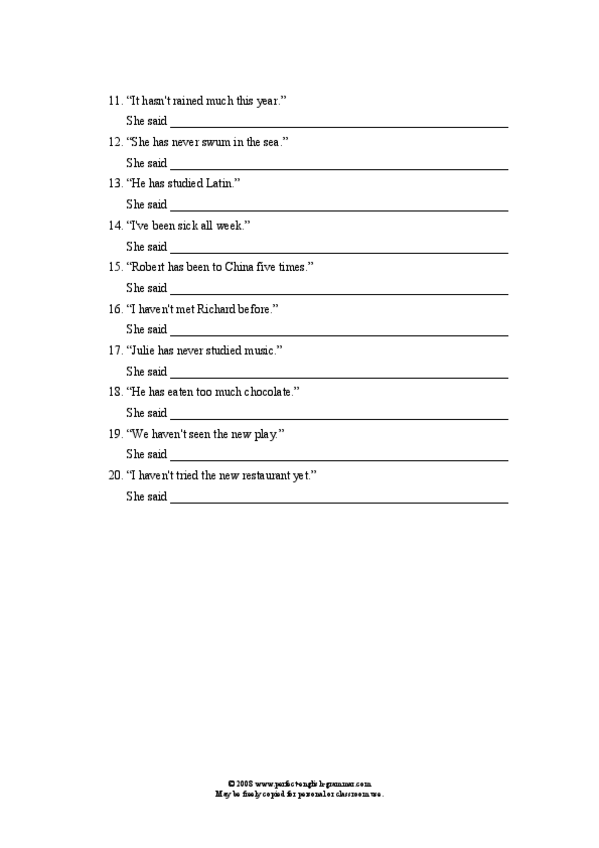 He publicado nuevos ejercicios de Inglés B1: reported_statements_present_perfect.pdf