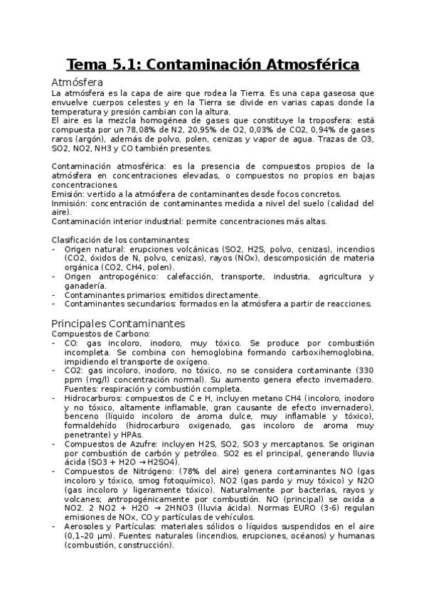 Resumen completo del tema 5.1 de Tecnología Medioambiental, compacto y completo.