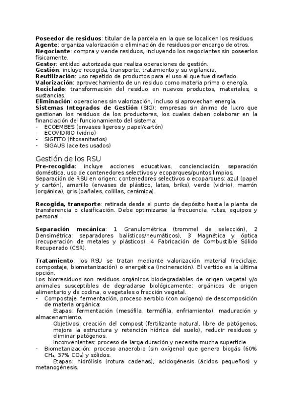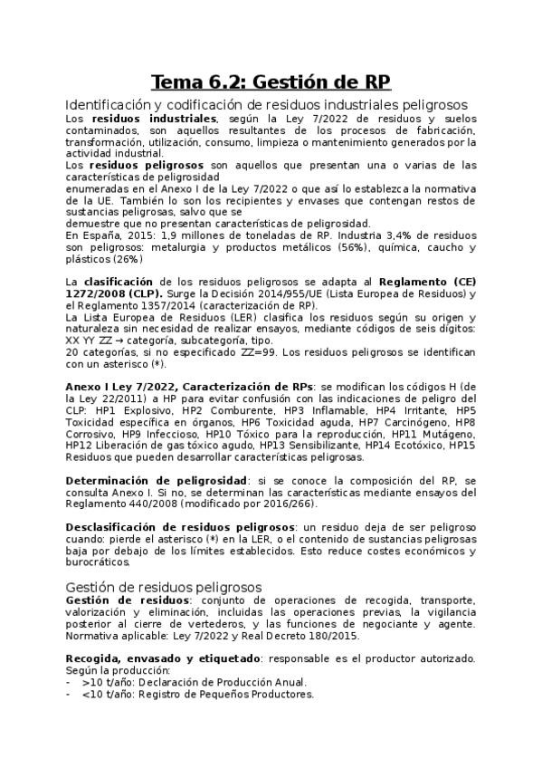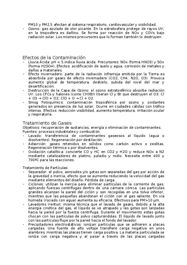 Resumen completo del tema 6.2 de Tecnología Medioambiental, compacto y completo.