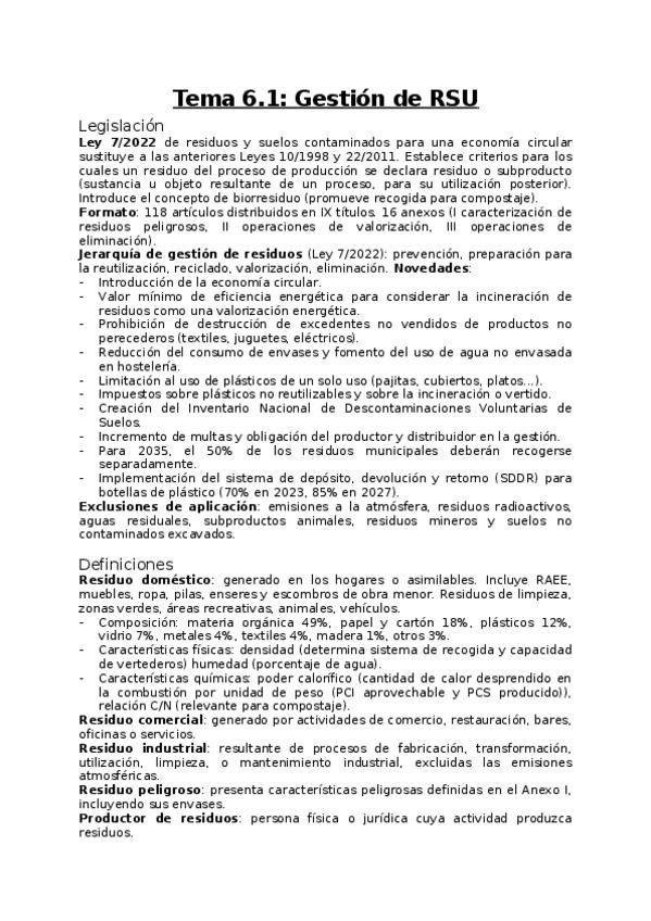 Resumen completo del tema 6.1 de Tecnología Medioambiental, compacto y completo.