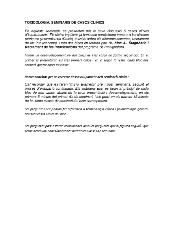 He publicado nuevos examenes de 4º Toxicología: Examen Online PRE CASOS 1,2 i 3