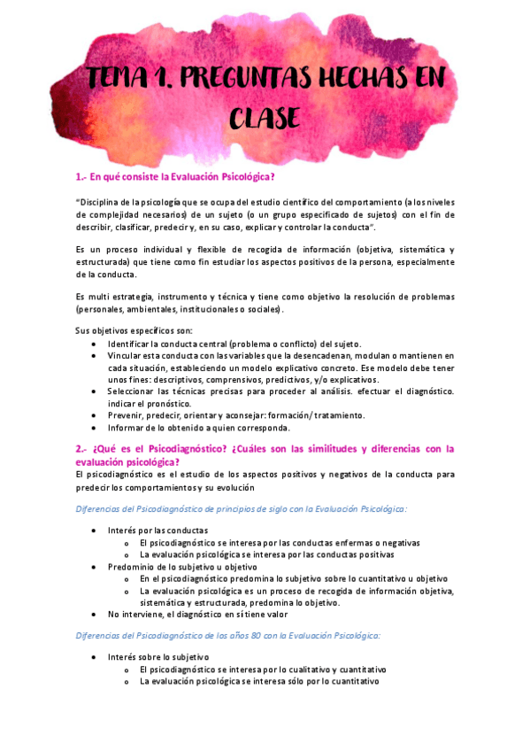Resúmenes de la asignatura Evaluación Psicológica con Manual, diapositivas, explicaciones de clase y artículo.