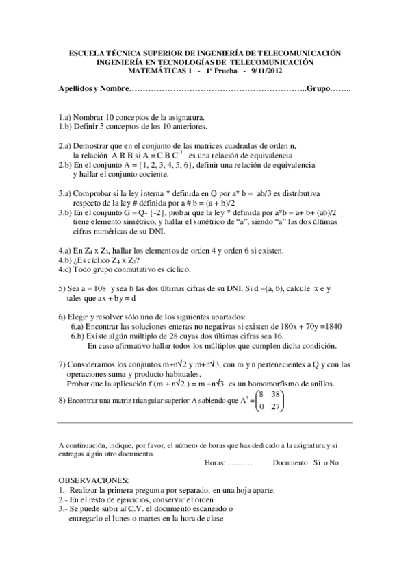 He publicado nuevos examenes de 1º Matemáticas 1: Examen 2012 diciembre.pdf