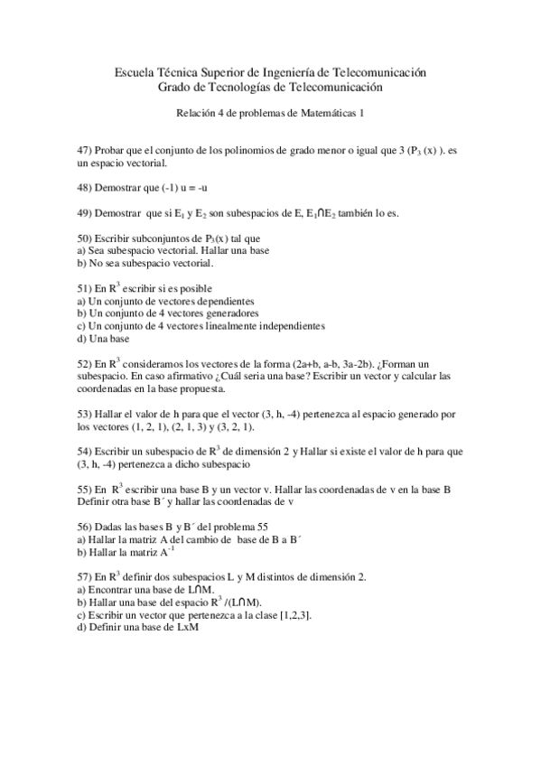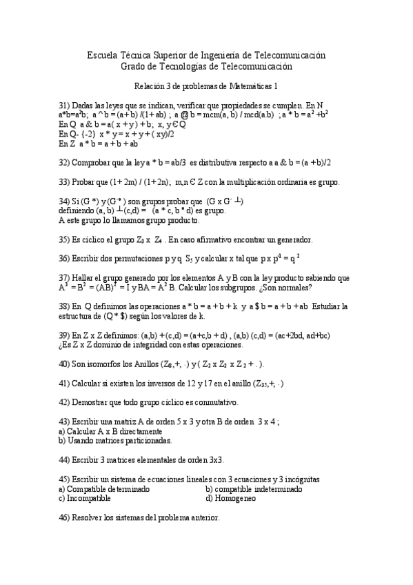 He publicado nuevos ejercicios de 1º Matemáticas 1: Relacion de Ejercicios Numero 4 2013