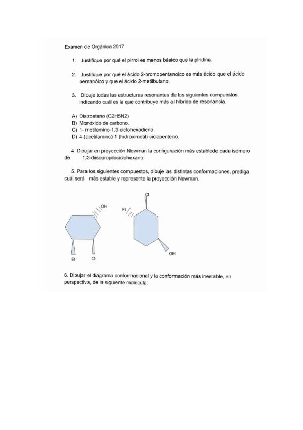 He publicado nuevos examenes de 1º Química Orgánica I: Primer parcial Organica 1 2017