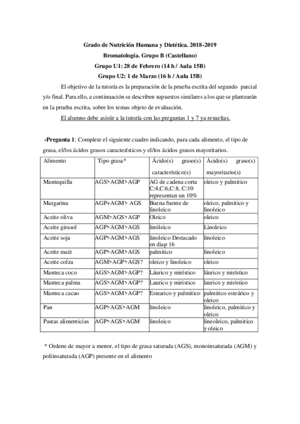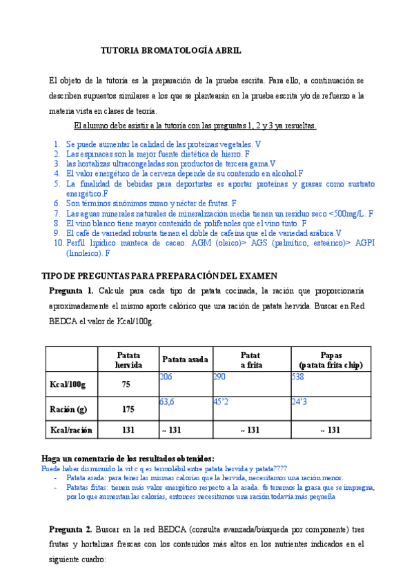 Preguntas examen, tutorias, seminarios -Bromatología