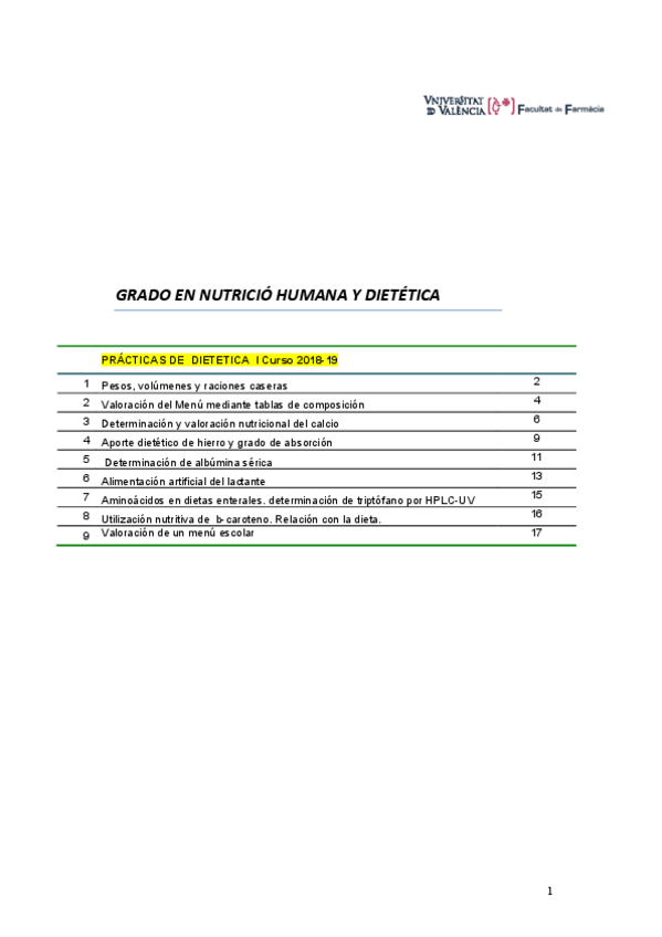 tutorias y actividades - DIETÉTICA I