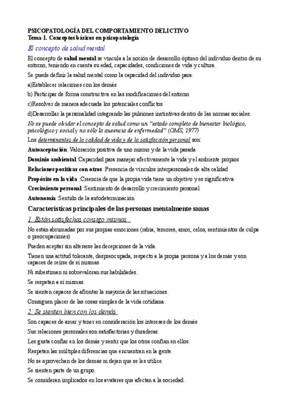 He publicado nuevos apuntes de 3º PSICOPATOLOGIA DEL COMPORTAMIENTO DELICTIVO: Psicopatología