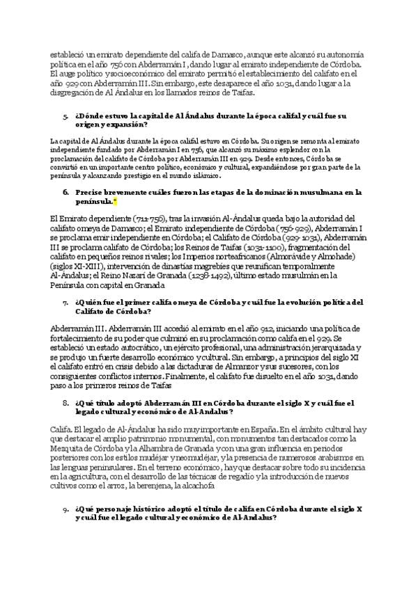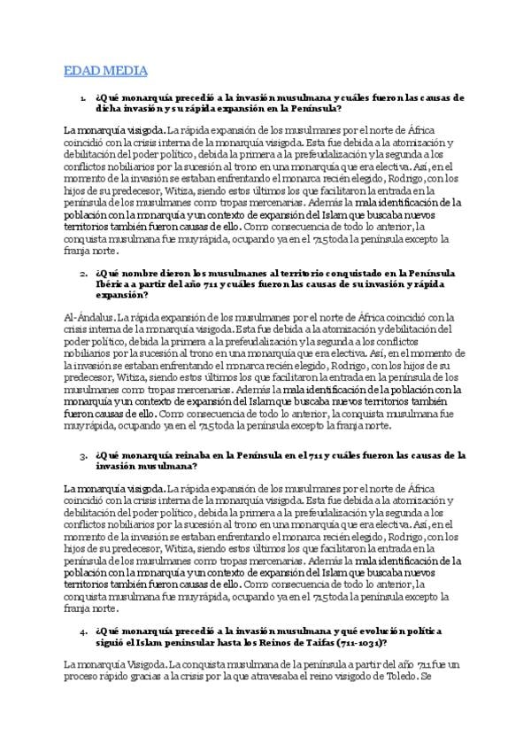 Listado de preguntas cortas resuelta; edad media, reyes católicos, austrias y s.XVIII