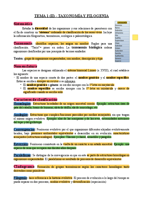 Sólo lo principal de cada tema