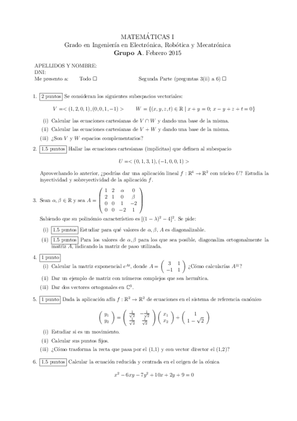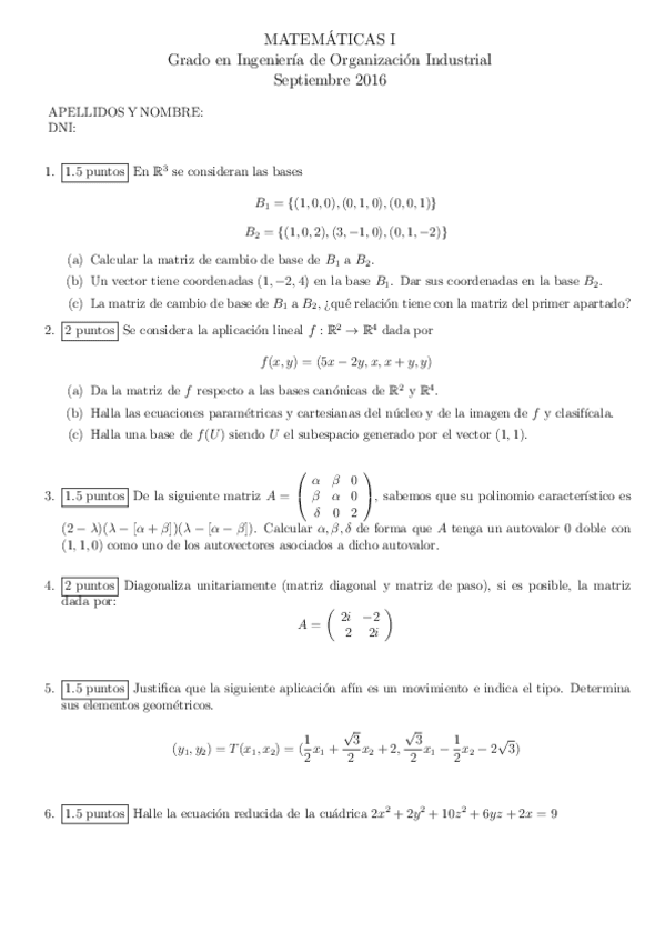 Examenes de Matematicas I