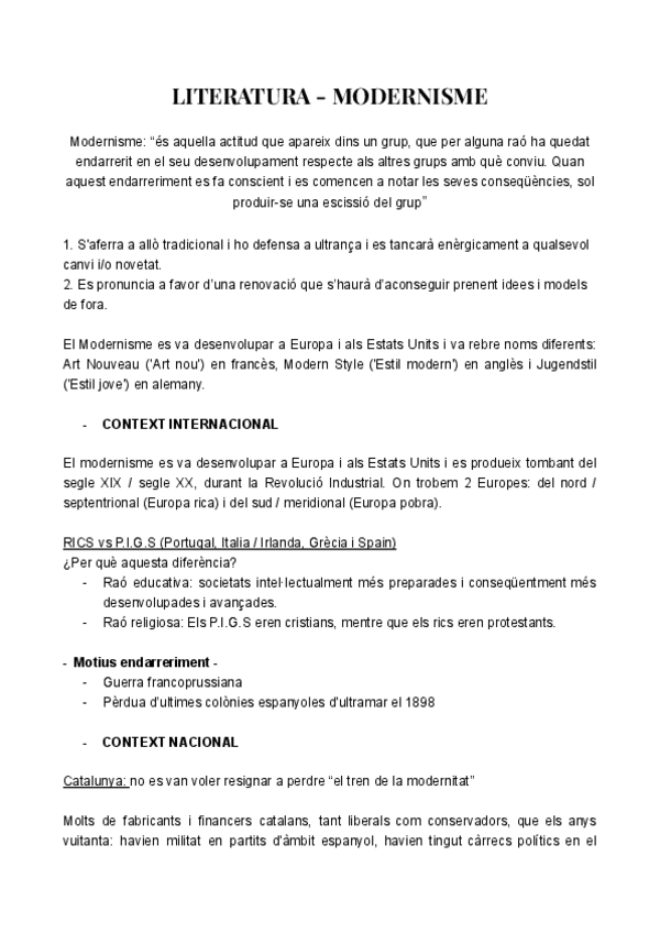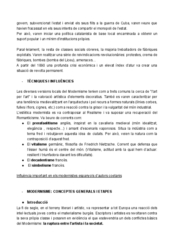 Apuntes sobre el modernismo para segundo de bachillerato y para la PAU.