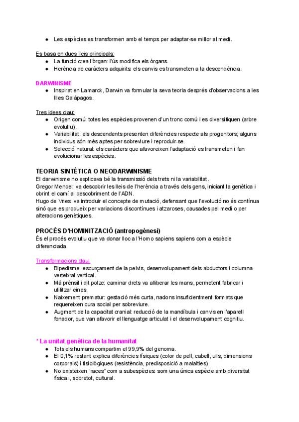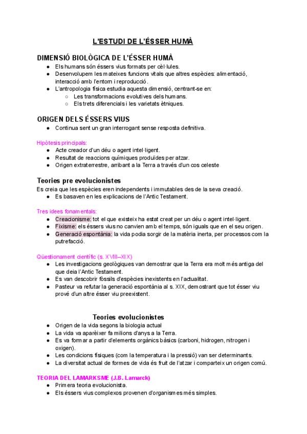 L'ÉSSER HUMÀ: ORÍGENS, NATURA I CULTURA - dimensió biològica de l’ésser humà - origen dels éssers vius - Teories pre evolucionistes - Teories evolucionistes - la unitat genètica - inteligencia animal - emocions animals