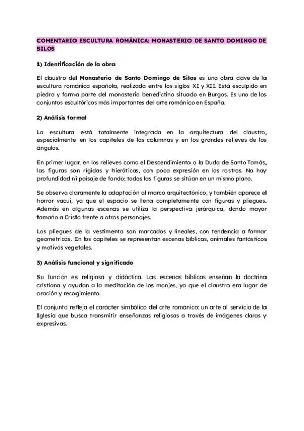 COMENTARIO de la escultura románica: claustro del MONASTERIO DE SANTO DOMINGO DE SILOS (BURGOS) 2º BACHILLERATO