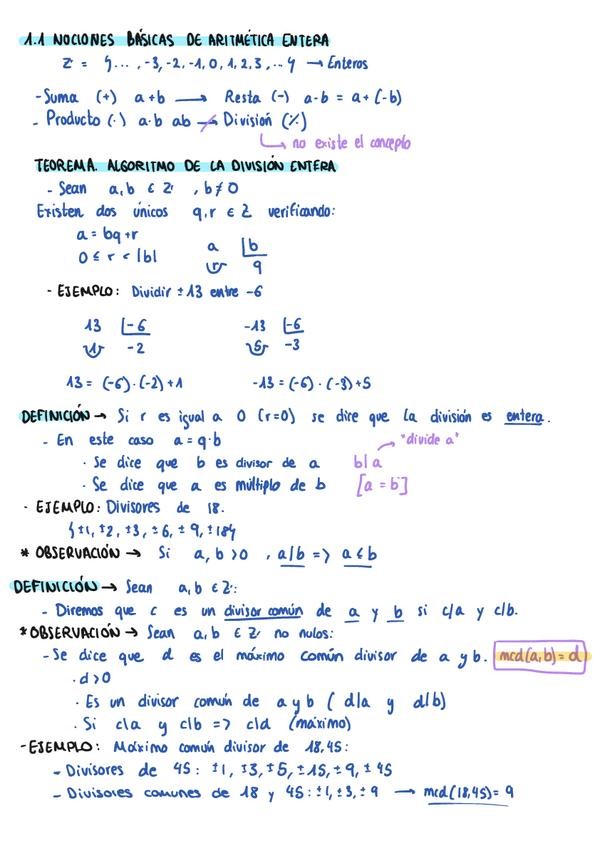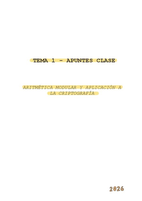 Apuntes del tema 1 - Aritmética modular y aplicación a la criptografía. Tomados en clase de Alejandro.