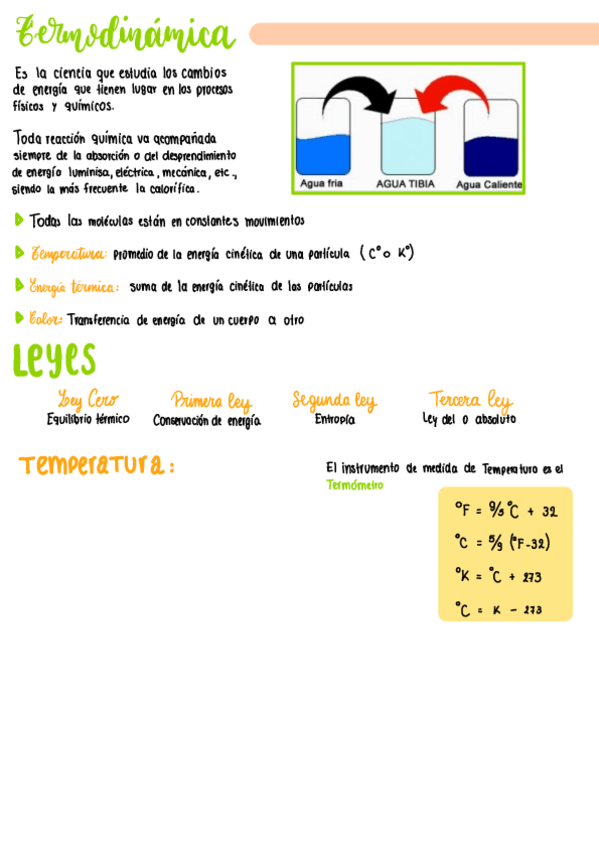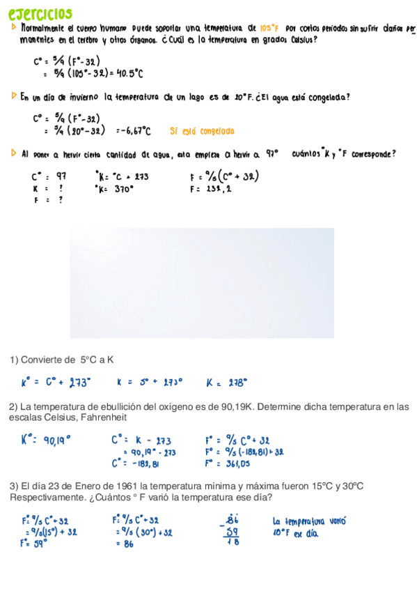 Apuntes TERMODINÁMICA Y CONVERSIÓN DE TEMPERATURA EN °K, °C y °F + ejercicios resueltos