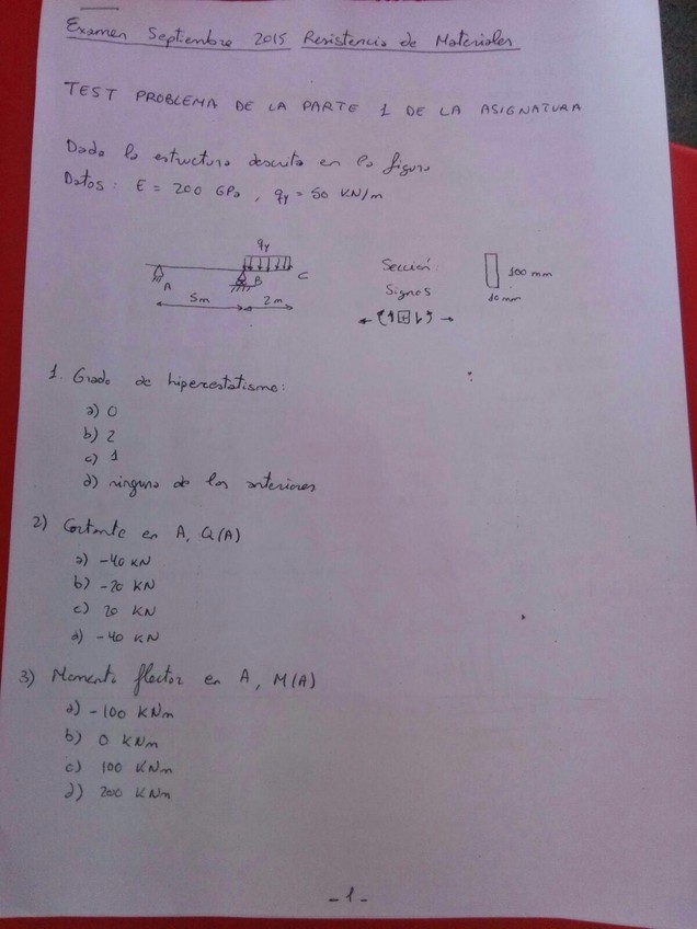 He publicado nuevos examenes de 2º Resistencia de Materiales: SEPTIEMBRE 15