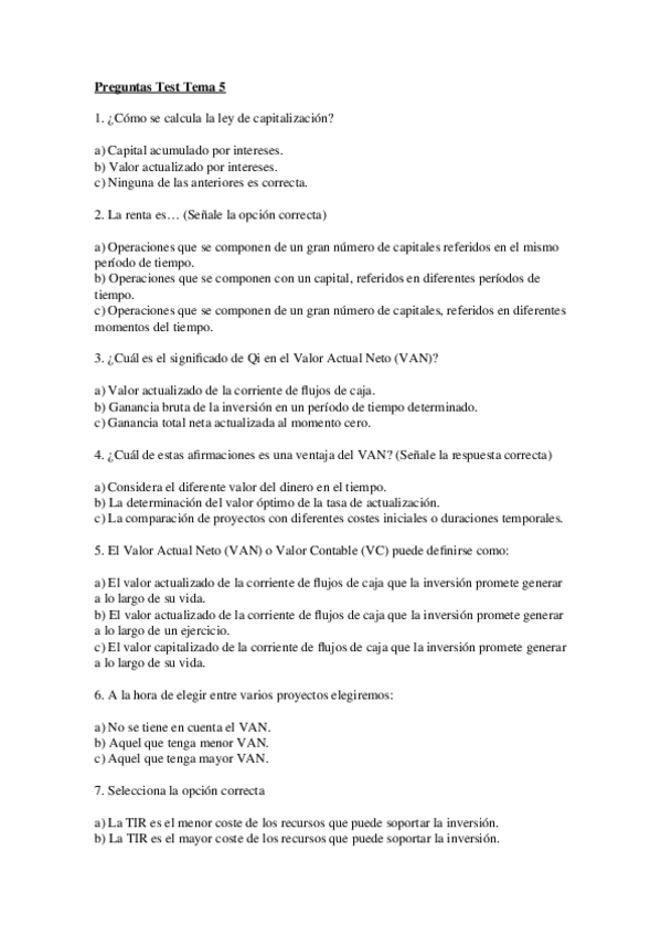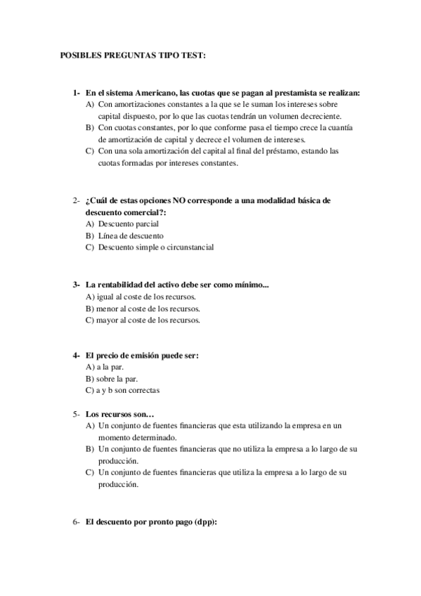 He publicado nuevos examenes de 4º Introducción a las Finanzas: Preguntas Test