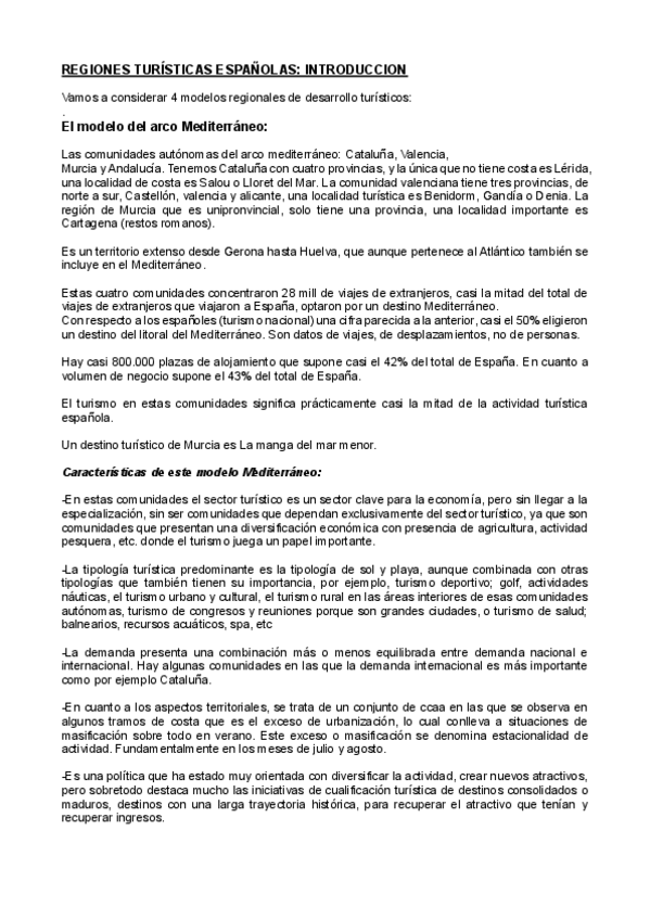 APUNTES REGIONES TURÍSTICAS ESPAÑOLAS