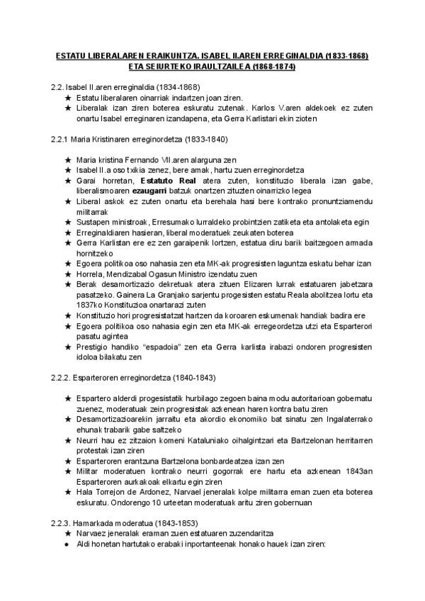 ESTATU LIBERALAREN ERAIKUNTZA. ISABEL II.AREN ERREGINALDIA (1833-1868) ETA SEIURTEKO IRAULTZAILEA (1868-1874)
