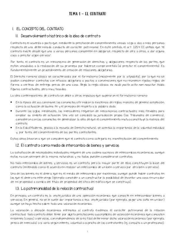 Resumen del tema 1 del libro Principios del Derecho civil III. Contratos (Lasarte)
