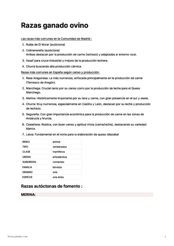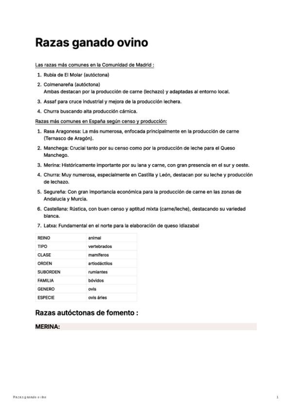apuntes razas de ganado ovino con la parte 1 de fomento y la parte 2 en peligro de extinción