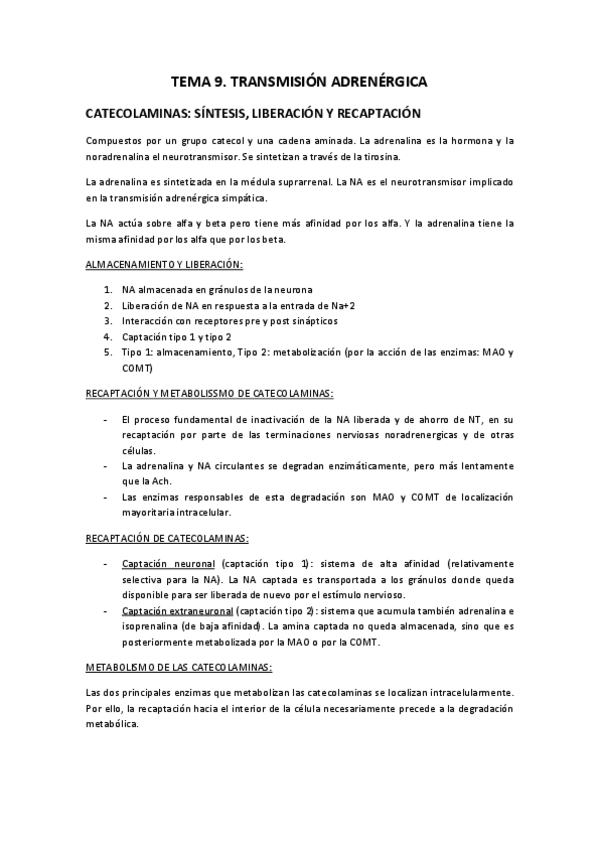 He publicado nuevos apuntes de 3º Farmacología General y Ocular: T9. TRANSMISIÓN ADRENÉRGICA.pdf