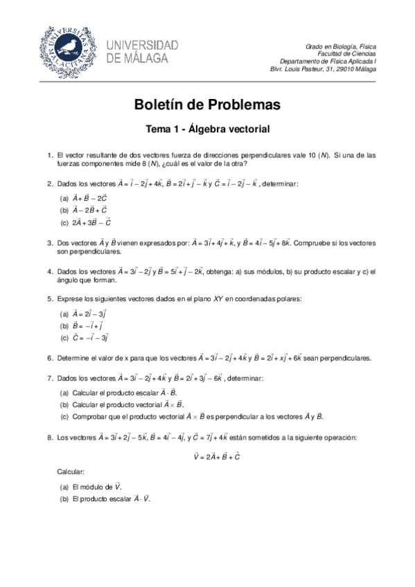 He publicado nuevos apuntes de 1º Física: Boletines problemas (turno de tarde)