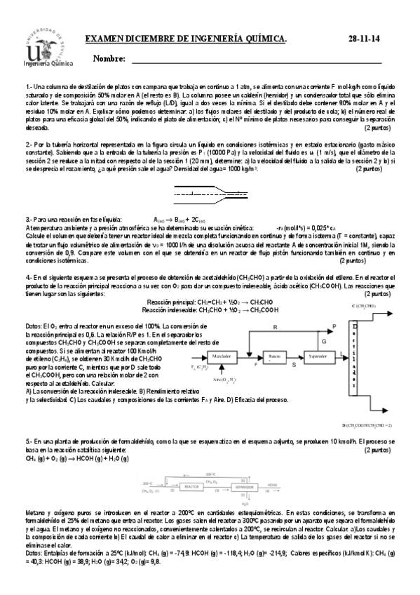 Casos prácticos resueltos y corregidos: cantidad de movimiento, transmisión de calor y transferencia de materia.