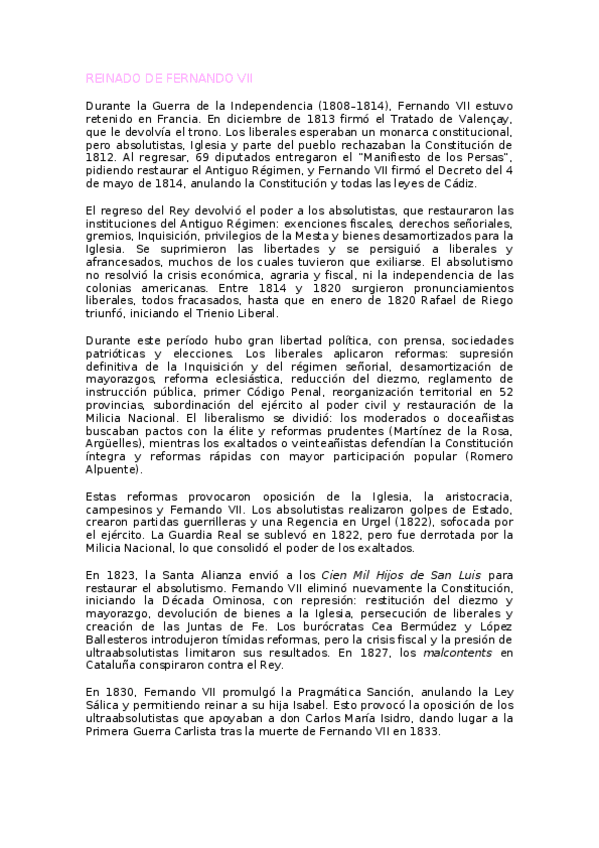 Aquí os dejo el tercer punto del tema 4 de Historia de España sobre el reinado de Fernando VII