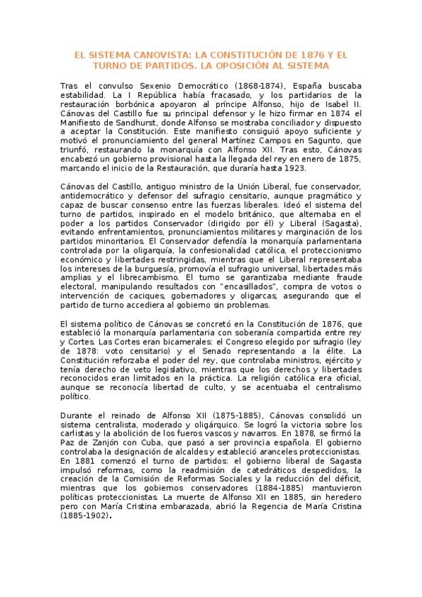 Os dejo un resumen del sistema canovista, completo como para poder sacar un diez en la PAU de historia en Madrid