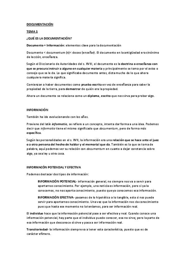 He publicado nuevos apuntes de 1º Documentacion: documentación