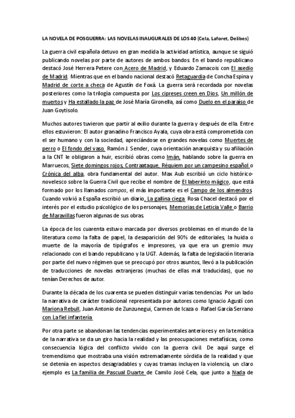 He publicado nuevos apuntes de Lengua Castellana y Literatura II: 1. LA NOVELA DE POSGUERRA. LAS NOVELAS INAUGURALES DE LOS AÑOS 40.pdf