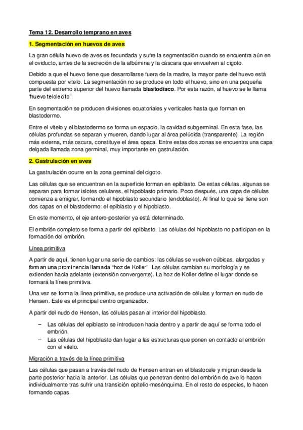 He publicado nuevos apuntes de 3º Bases Celulares y Moleculares del Desarrollo: Tema 12. Aves.pdf