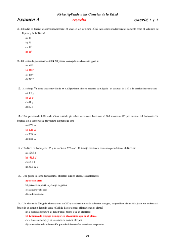 He publicado nuevos examenes de 1º Física Aplicada a las Ciencias de la Salud: Examen enero_2013-resuelto.pdf