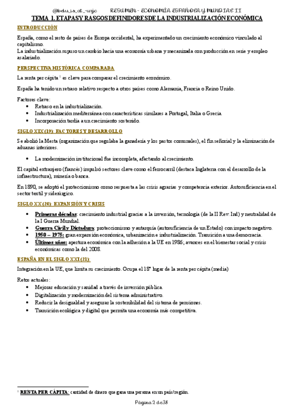 Resumen con ideas clave de los temas de Economía Española y Mundial II