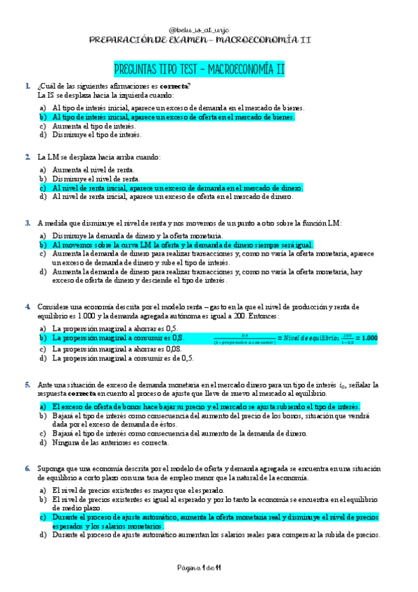 PREGUNTAS TIPO TEST DE EXAMEN - MACROECONOMÍA II