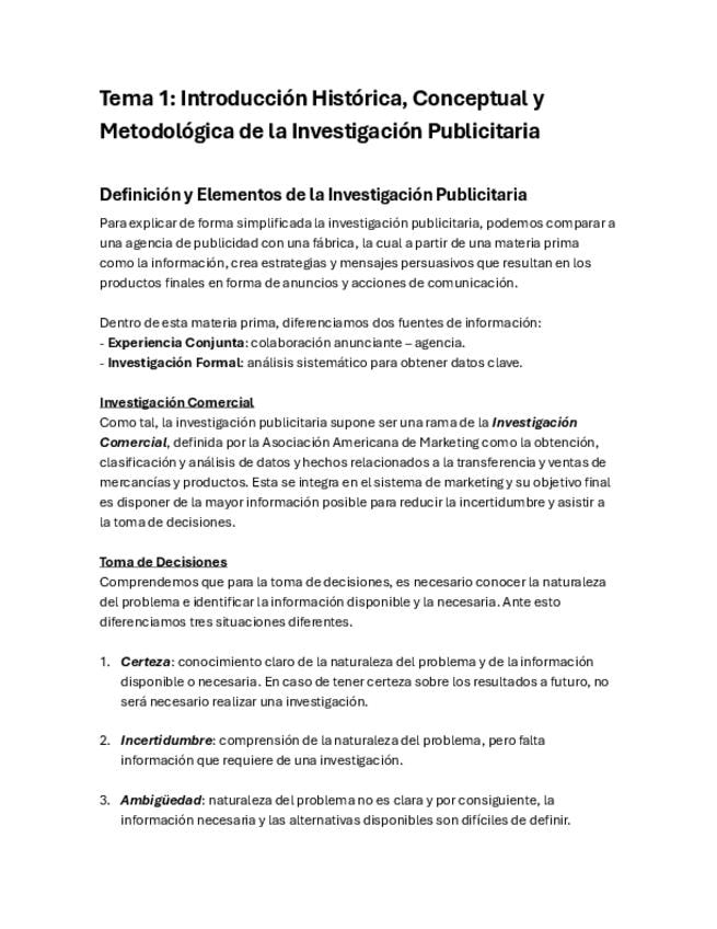 Investigación Publicitaria - Tema I: Introducción Histórica, Conceptual y Metodológica de la Investigación Publicitaria.